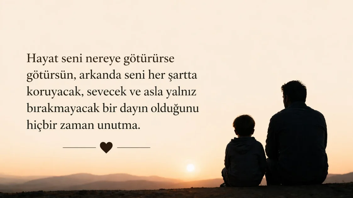 Dayı yeğen sözleri uzun sevgi ve bağlılığın en içten şekilde ifade edildiği özel cümlelerdir; aşağıdaki sözler, dayı ile yeğen arasındaki güçlü bağı, fedakârlığı ve koşulsuz sevgiyi en anlamlı haliyle yansıtır.