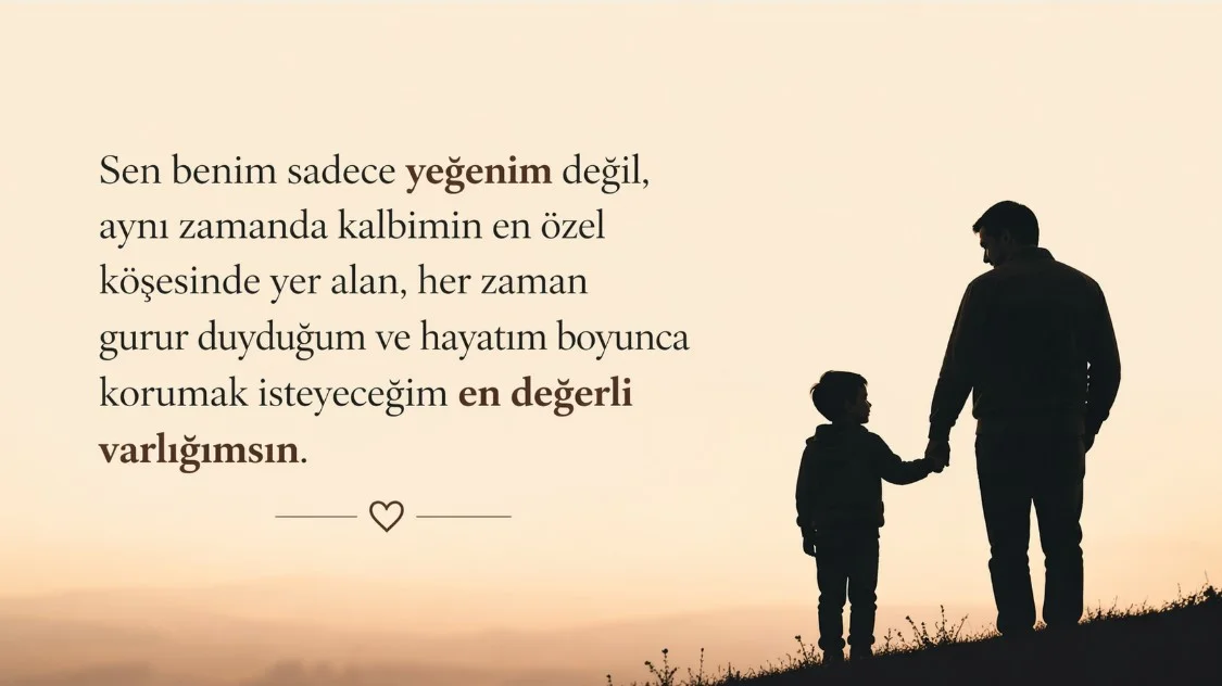 2. Sen benim sadece yeğenim değil, aynı zamanda gurur duyduğum, her başarında kalbimi sevinçle dolduran en değerli parçam oldun.